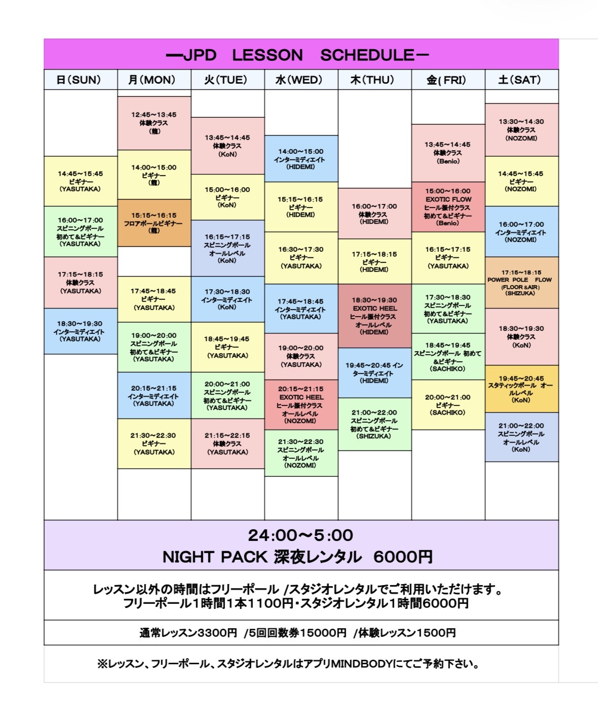レッスンスケジュール